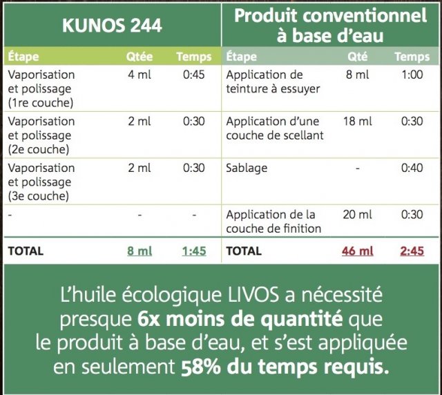 d’application du produit Livos par rapport à un vernis à base d’eau.