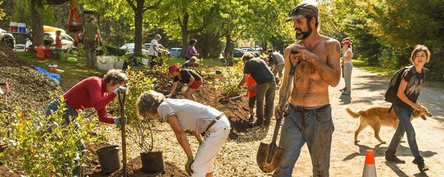 Comment est née l’initiative? « Le mouvement est une suite logique du mouvement des Incroyables comestibles, initiés dans le village en 2011. Mais afin de poursuivre l’implantation et la réussite du projet, le besoin de financement était grand. Le programme expérimental Ensemble vers Carboneutre nous a permis d'y parvenir. Les entreprises et les citoyens peuvent neutraliser une partie de leurs émissions de gaz à effet de serre (GES) en achetant des vivaces et des arbres fruitiers, ou en offrant des heures de bénévolat, sous forme de troc. La plantation de 200 arbustes et de 12 arbres permet ainsi de financer le projet tout en compensant l’émission de près de 115 000 km parcourus en voiture, soit l’équivalent de 675 aller-retour Montréal/Val-David. »