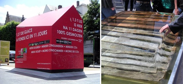 Il y a dix ans, l'organisme belge Plateforme maison passive organisait un premier défi mettant à l’épreuve un standard d’isolation, celui des maisons passives. Ainsi, pendant 6 semaines, entre entre avril et mai 2007, deux blocs de 1 300 kg de glace avaient été installés dans deux pavillons à Bruxelles. Les différents niveaux d'isolation de ses deux petites maisons ont suffit pour prouver l'importance de l'isolation, grâce aux différents niveaux de fonte constatés.