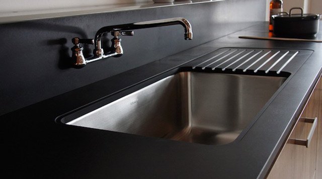 Autres avantages: le comptoir est sain (sans COV), résistant aux taches, et le tout se recycle en fin de vie. En prime, tout comme les autres matériaux mentionnés ci-haut, vous pouvez faire mouler le dosseret en utilisant le même matériel, mais vous pouvez également faire mouler le lavabo avec le comptoir, ce qui n’est pas possible avec les autres matériaux.