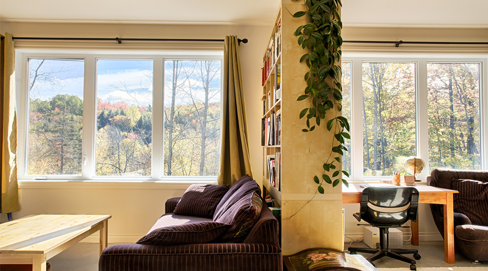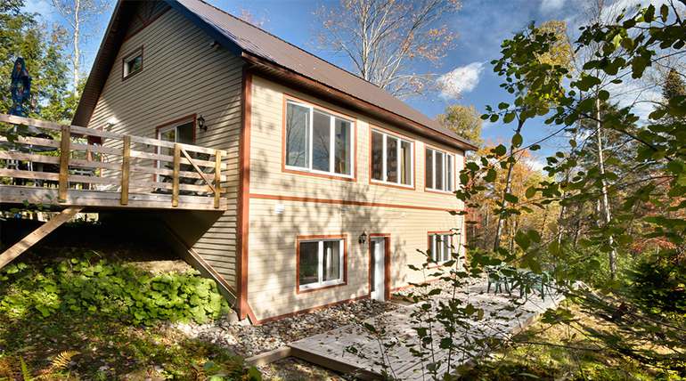 - Ossature de bois avec lisses et sablières de 2x8 et colombages de 2x4 en quinconces