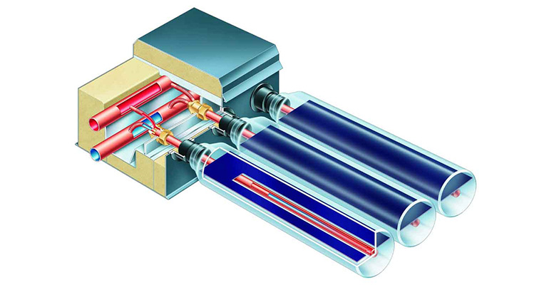C’est le type le plus courant. Généralement composé de tubes de verre contenant des tuyaux de cuivre, couverts par des plaques sombres permettant d'absorber la chaleur. Les tubes, scellés hermétiquement et conservés sous vide, sont installés séparément dans le collecteur, ce qui facilite le remplacement d’un tube s’il est fissuré ou si le joint est cassé. Le système est également plus facile à installer puisqu'il n'y a pas à transporter un seul panneau pesant, mais plutôt des pièces détachées.