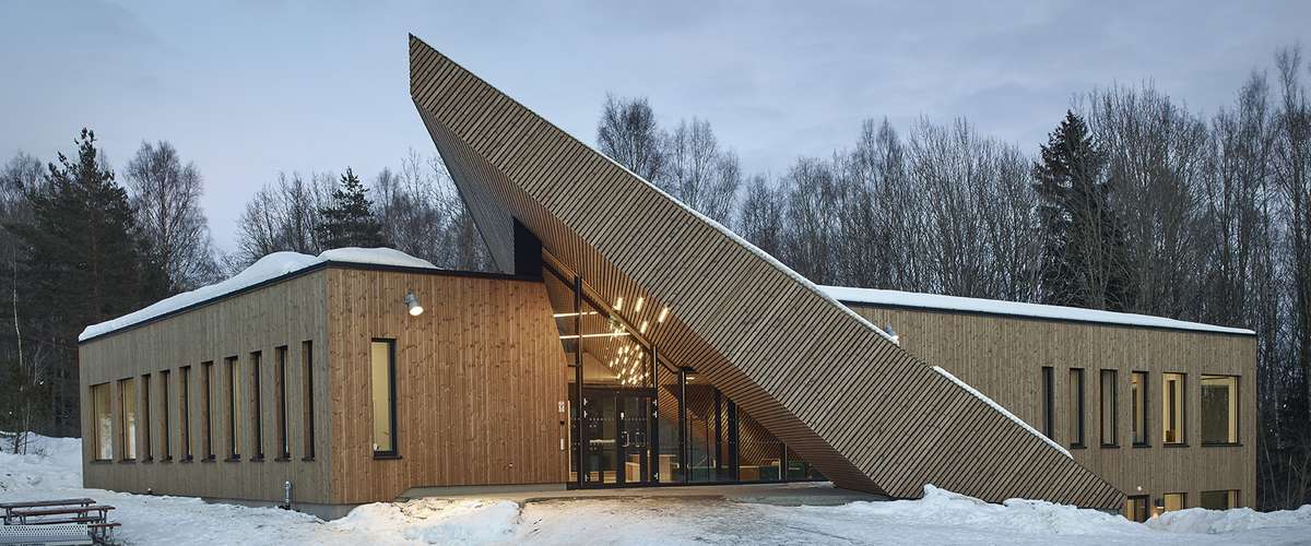 Construite à Drøbak en Norvège, les toits en pente de l’école sont munies de panneaux solaires. Équipé dn plus d’une pompe géothermique, le bâtiment est ainsi en mesure de produire plus d'énergie pendant sa durée de vie (près de 30 500 kWh par an) que la quantité totale d'énergie qui sera finalement utilisée pour sa construction, son fonctionnement et sa démolition.