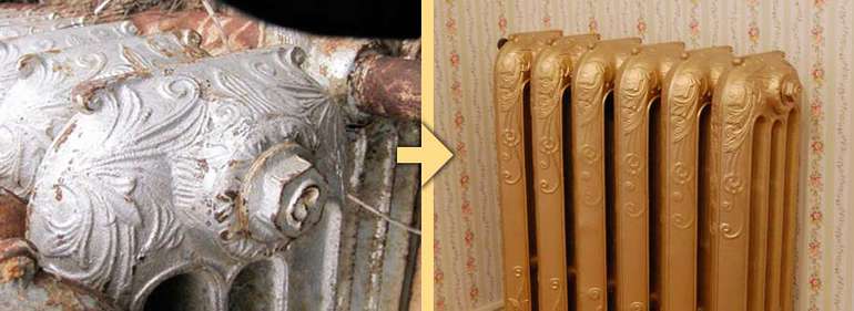 Ecorad propose donc de restaurer les calorifères antiques, grâce à un processus environnemental de décapage des vieilles peintures au jet d’eau (recommandé par Patrimoine Canada). L'intérieur des pièces est nettoyé, et des tests de fuites sont effectués. Enfin, les radiateurs retrouvent une seconde jeunesse avec une finition charbon ou autre en option. L'effet avant-après est garanti!