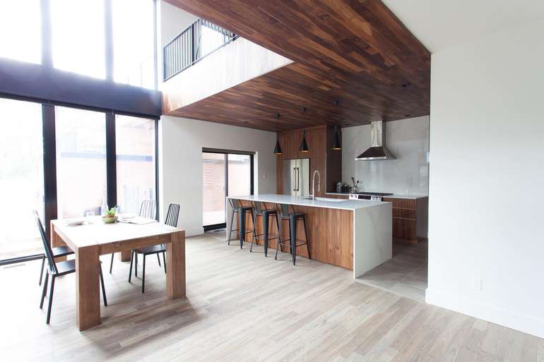 Il est possible d’éliminer totalement les panneaux de gypse en utilisant la structure directement pour poser, par exemple, des lattes de bois. Ces lambris s’emboîtent aisément, sont moins chers que le gypse, sont très durables, résistants aux chocs et ont un impact environnemental minimal. Autre alternative, les panneaux de finition en contreplaqué sont plebiscités par de nombreux designers québécois.