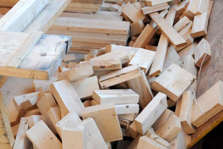 - Les petits morceaux d’ossature de bois peuvent être taillés et utilisés comme combustible. Sinon, on les emmène au centre de tri, il seront réacheminés à des compagnies qui les transformeront en panneaux de contreplaqué, palettes d’aggloméré moulées, briquettes pour les foyers, litière, granules combustibles, paillis ou encore en panneaux acoustiques.