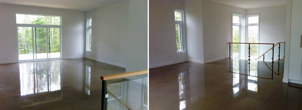 - le béton poli aux 2 étages avec système radiant hydronique;