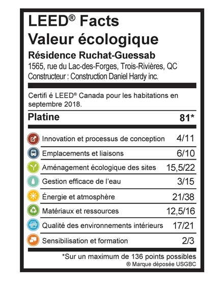 - la certification Novoclimat (ce qui lui a permis d’obtenir certains points automatiques) ;