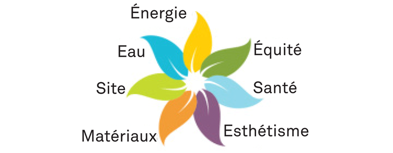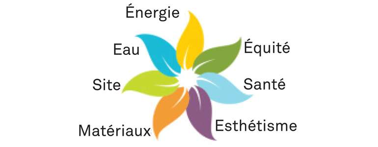 Aux premiers abords, cette certification fait figure de sport extrême à côté des autres, car elle vise à réaliser, sans concession, 20 impératifs regroupés sous sept thèmes fondateurs. Baptisés « pétales », ces enjeux sont liés au site, à l’autosuffisance en eau et en énergie, à la santé et au bonheur, aux matériaux, à l’équité et à la beauté. Chacun de ces impératifs, pris séparément, est couramment réalisé. Le défi ? Les regrouper dans un seul bâtiment !