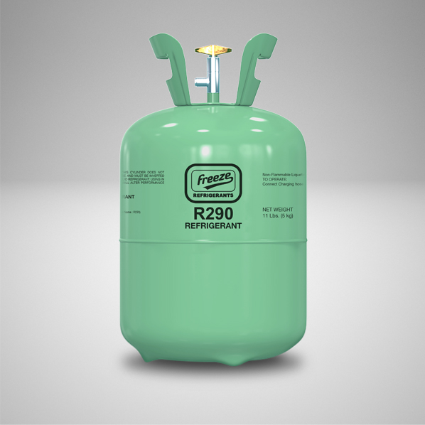 En passant de l’état liquide à l’état gazeux, le propane, communément appelé R290, devient extrêmement froid, ce qui en fait un excellent réfrigérant (vérifiez par vous-même en touchant à votre bonbonne à BBQ). Et, quoiqu’un sous-produit du raffinage du pétrole, ce gaz est non toxique, possède un potentiel d’appauvrissement de la couche d’ozone égale à 0 et un potentiel de réchauffement climatique de 3. Comparé au HFC-23, qui possède quant à lui un potentiel de 11 700, c'est plutôt avantageux !