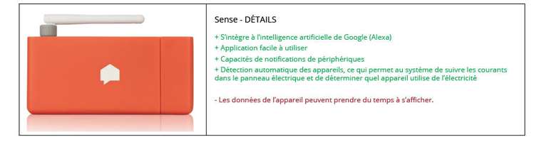 Un appareil à auto-apprentissage installé dans le panneau électrique qui permet de mieux comprendre votre consommation d’énergie et vos activités domestiques. Il peut également partager ses données avec d’autres appareils Sense et il reconnait, et différencie, les appareils de la maison.