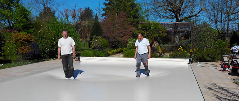 Un autre type de membrane couvrante pour les piscines, beaucoup plus abordable, mais sans aucune valeur liée à la sécurité, est ce qu’on appelle la toile flottante. Cette couverture est une simple feuille mince de polypropylène intégrant des bulles d’air, un peu à l’image du classique bubble wrap. Cette toile fait un très bon travail de rétention de la chaleur en empêchant l’évaporation. Et, si elle est colorée et protégée contre l’effet de dégradation due à l’exposition aux rayons UV, elle peut même accélérer les gains solaires d’une piscine plus claire.