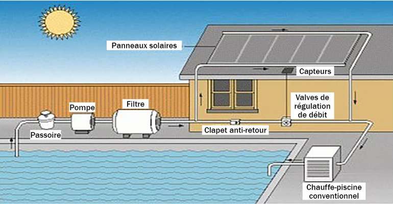 Exemple de fonctionnement d’un capteur solaire pour le chauffage d'une piscine