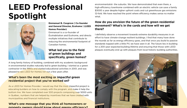 Voici l’entrevue qu’Emmanuel a donnée à « LEED in Motion ».