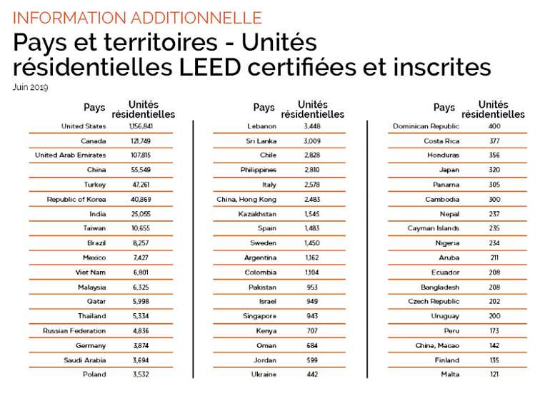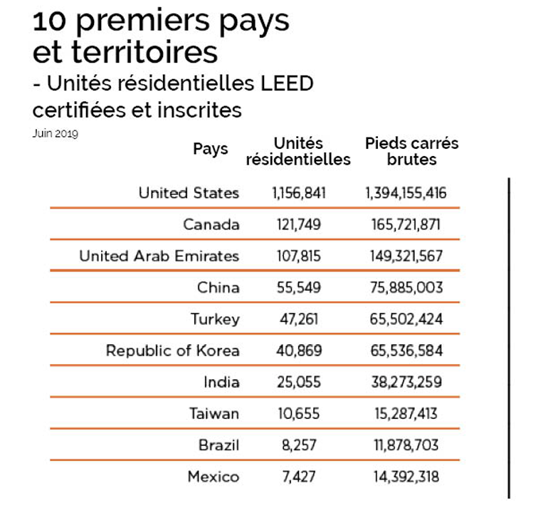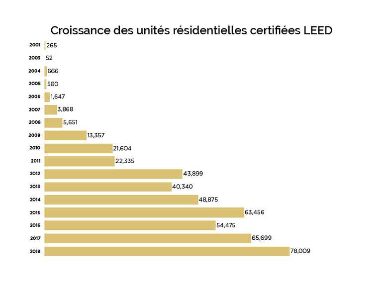 1. La croissance des unités résidentielles certifiées LEED dans le monde