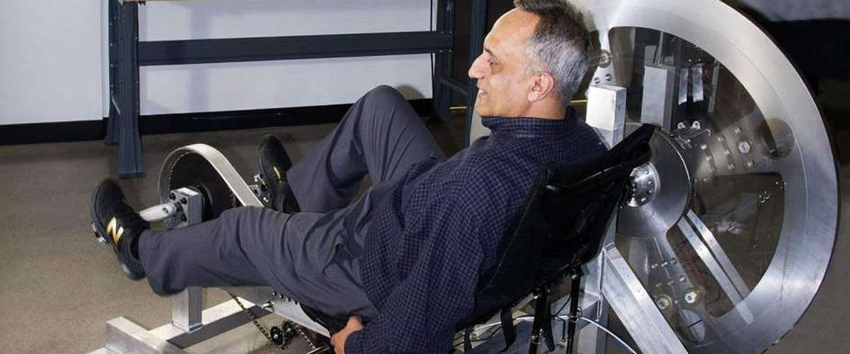 Manoj Bhargava, inventeur d'un modèle commercialisé, le vélo Hans Free Electric™, démontre qu’il est possible de générer de l’électricité à la maison tout en effectuant un entraînement quotidien d'une heure.