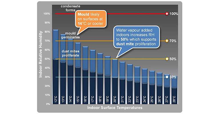 Lorsque de l'air humide pénètre à l'intérieur d'un mur, d'un toit ou d'une cavité de plancher d'une maison, il condensera généralement à un point de rosée, et pourrait entrainer des problèmes importants si l’enveloppe ne peut sécher. Un problème causé principalement par le pare-vapeur entre la cloison sèche et l’ensemble du mur. L’eau formée pourrait par exemple pénétrer dans le bois, l'isolation et les cloisons sèches, créer de la moisissure et l’affaissement des matériaux. Même si ces problèmes ne sont pas visibles à l’œil nu, ils parviennent souvent dans les toits plats et cathédrales et les murs à charpente. On ne s’en rend généralement compte qu’une fois trop tard.