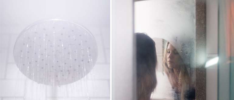 La salle de bain est l’endroit le plus humide de la maison. Prendre une douche libère d’énormes quantités d’humidité dans l’air. Plus elle est chaude et longue, plus elle produit de vapeur d’eau. Pour réduire cette source d'humidité évitable et économiser de l'énergie (et de l'eau), essayez simplement de respecter une température et une durée raisonnables - tout en faisant fonctionner le ventilateur de la salle de bain pendant la douche et 15-20 minutes après pour diriger cet air humide à l'extérieur.