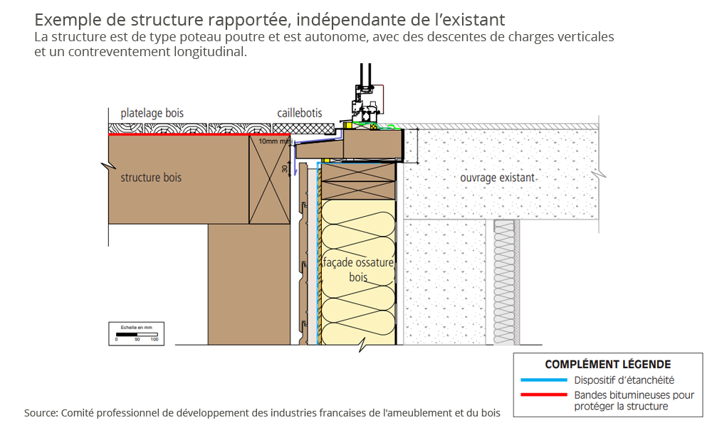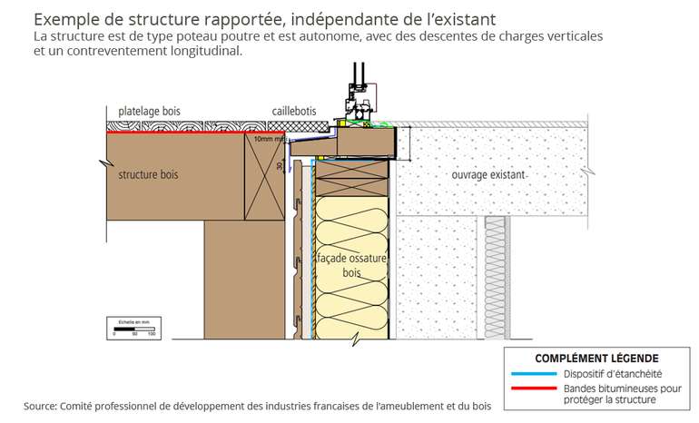 Dans cette technique, l’enjeu se situe dans la stabilité: les balcons désolidarisés sont portés par la façade ou autonomes avec une structure dédiée. La conception de l’interface entre la façade et l’ouvrage rapporté doit être soignée pour garantir l’étanchéité et répondre aux exigences de sécurité incendie. De plus, cette option anime et donne du relief aux façades.