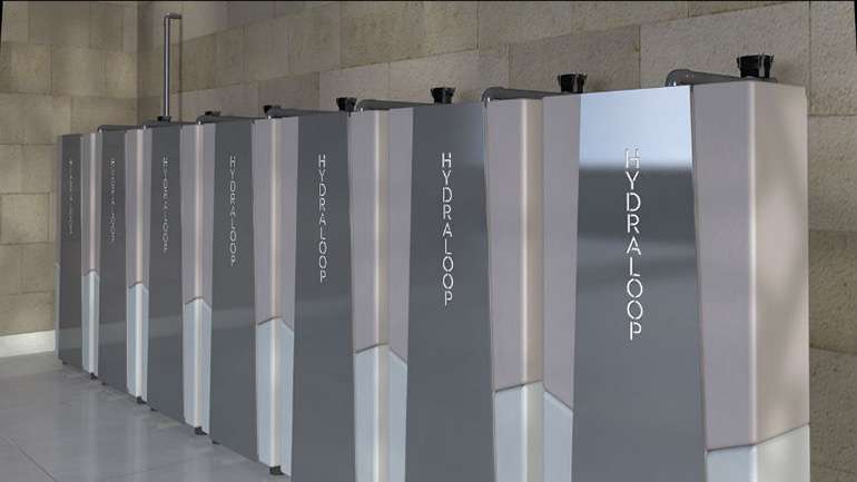 L'eau de la douche, du bain et du lave-linge est collectée dans l'Hydraloop. Le système de traitement combine cinq technologies distinctes pour éliminer la saleté, le savon et les autres particules de l'eau: sédimentation, flottation, flottation à air dissous, écrémage forcé et bioréacteur aérobie. La 6e technologie, le traitement final, est la désinfection à la lumière UV.