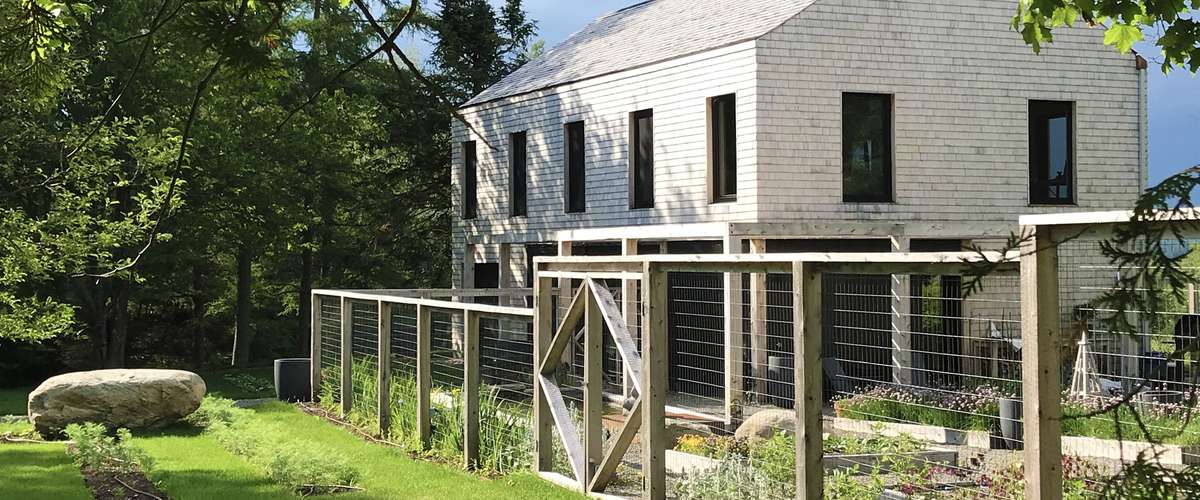 En plus d’être une maison d’invités, le bâtiment a pour vocation d’être un lieu de production maraîchère : jardin en permaculture, apiculture, potager biologique de 7000 pieds carrés et production de fleurs… Le projet, réalisé avec la firme Écomestible et Caroline Gosseline, experte en permaculture, est récent. Mais les activités de production et de transformation, comptant du miel, des œufs, des fleurs et du bois de chauffage, ont commencé cette année.