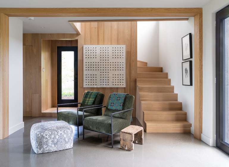 « Inspirée des bâtiments de ferme des Cantons de l’Est, la coach house se veut un exercice de simplification architecturale. On voulait créer un bâtiment inspirant et inspiré en utilisant un langage architectural basique, dicté par les bâtiments agricoles du début du 20e siècle. » Maxime Vandal, architecte, cofondateur Les Ensembliers