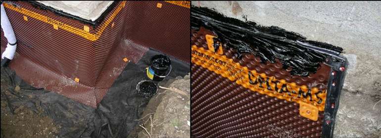 Voici un dessin technique des différentes couches de matériaux pour l'imperméabilisation et 'isolation de la fondation: