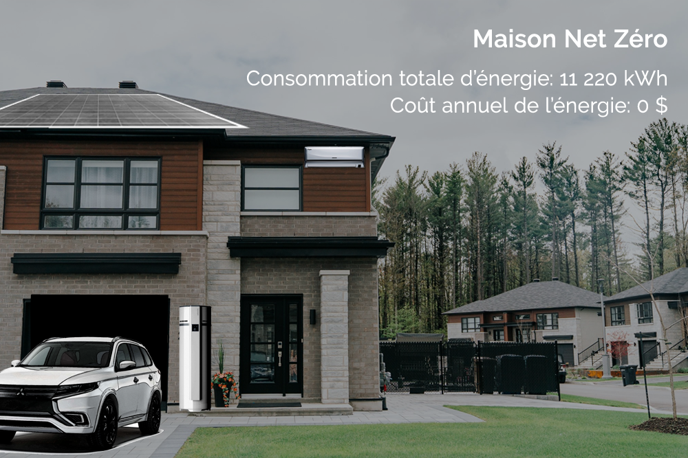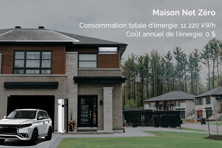 De plus, des panneaux solaires photovoltaïques peuvent être installés sur le toit pour produire sur place de l'énergie. Grâce à eux, les occupants de la maison bénéficient d'électricité gratuite! La production peut être injectée dans le réseau d’Hydro-Québec (facturation nette) ou dans des batteries (stockage).
