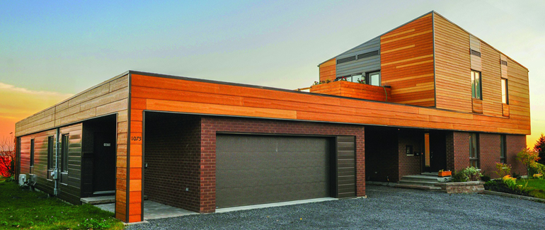 Dessinée et construite par la firme Tergos Architecture + Construction, cette maison prévue pour accueillir deux générations est située en banlieue de Québec, à Stoneham-et-Tewkesbury. Conçue en respect des principes du design solaire passif, l’habitation maximise les gains solaires et permet l’accumulation de chaleur dans la masse thermique de la chape de béton, en hiver. Avec son revêtement extérieur en bois et son enveloppe performante, la maison est aussi certifiée Novoclimat.