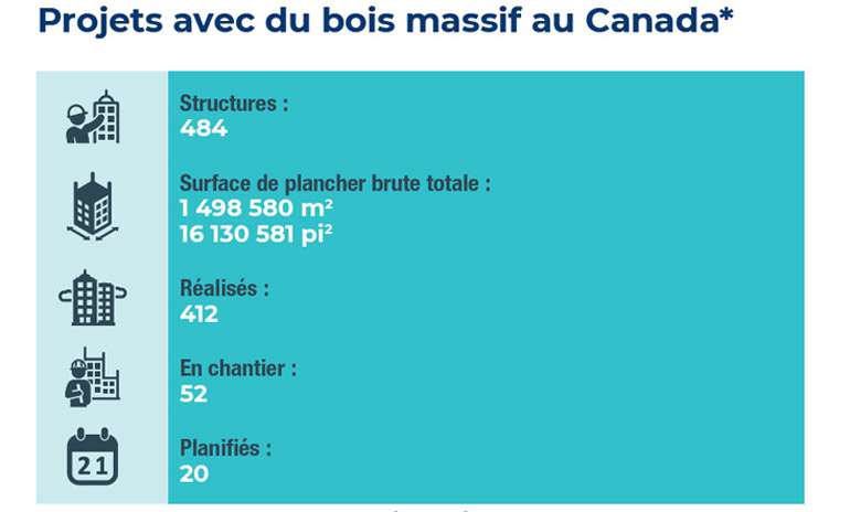 Avec sa vingtaine d’usines produisant plus d’un million de mètres cubes de bois massif annuellement, le Canada est bien placé pour répondre aux besoins de l’industrie. Ces besoins sont d'ailleurs grandissants d'année en année. Le bilan sur l'industrie bois massif canadienne souligne que ces installation de productions ont pu être déployées grâce au large soutien du gouvernement, à un remarquable écosystème de recherche, au savoir-faire incomparable de l’industrie et à ses forêts gérées durablement. Comptant pour 37 % des forêts durables de la planète, « le Canada s’impose comme un fer de lance de cette révolution dans la construction en bois. » affirme le Ministre des Ressources naturelles du Canada.