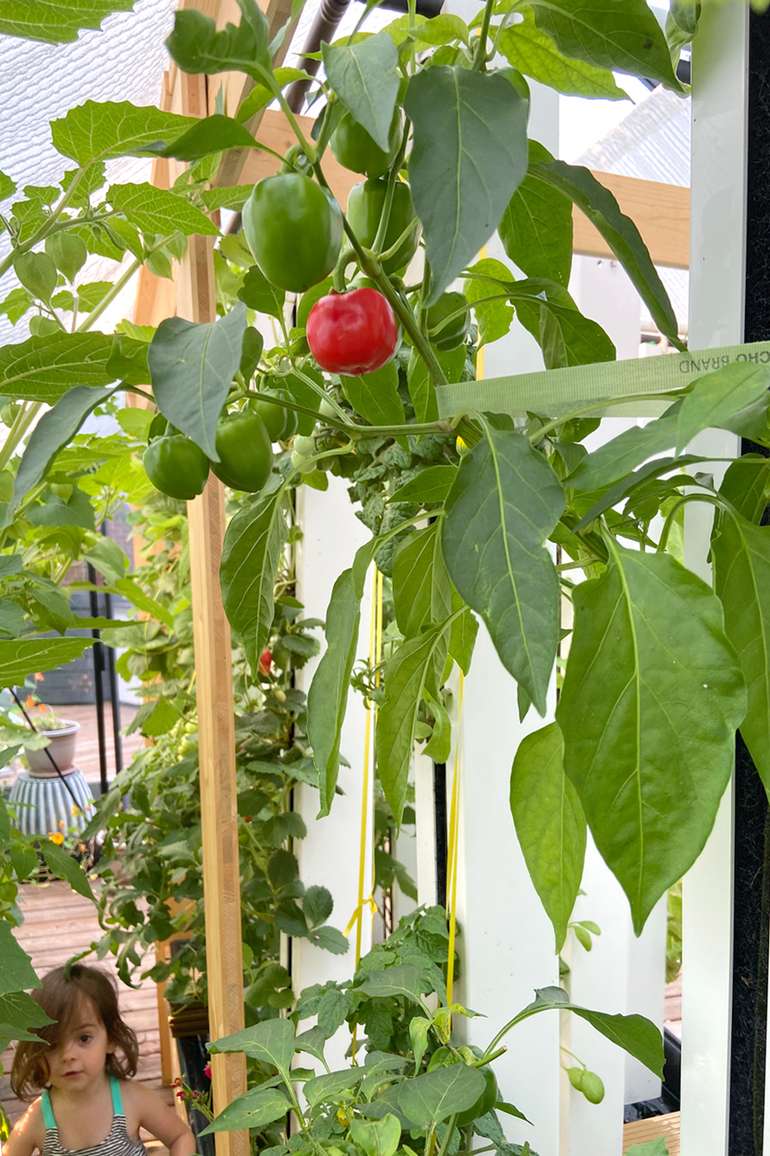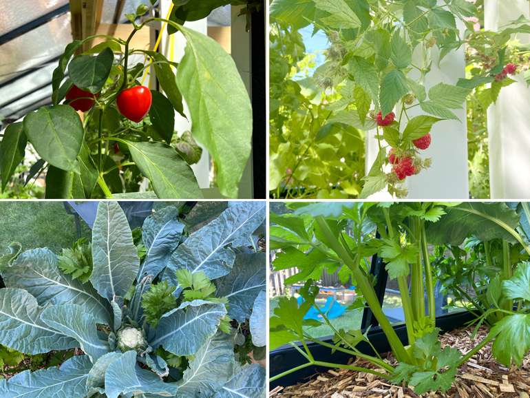 Quels légumes faire pousser dans ce type de serre ? À peu près tous ! Les tours et bacs accueillent depuis l’installation de la serre, début mai, une belle liste de végétaux.