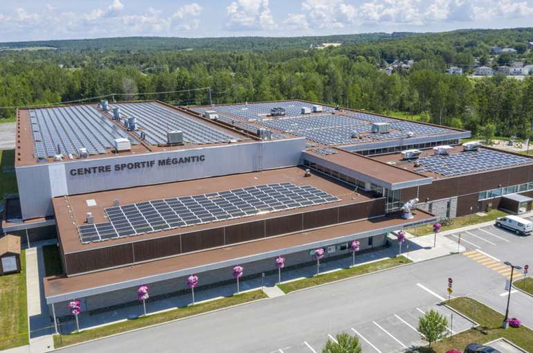Concrètement, le projet compte plus de 2200 panneaux solaires, dont 75 % installés sur le toit du Centre sportif Mégantic, totalisant près de 800 kW de puissance installée. L’énergie est ensuite stockée dans des batteries pouvant emmagasiner environ 700 kWh d’énergie.
