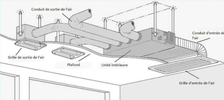 - Elles sont plus esthétiques et discrètes que les thermopompes murales puisque leur système est caché dans le plafond.