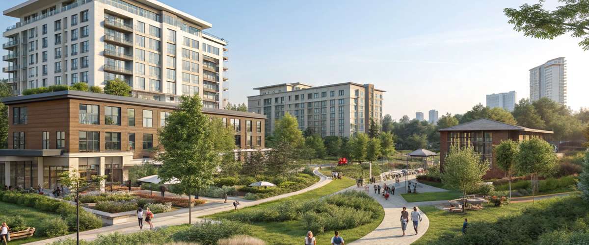 –bâtiments multifamiliaux de faible hauteur de 4 à 5 étages (systèmes décentralisés et bâtiment à 80 % résidentiel) - hauteur moyenne – tours d'habitations midrise (pour les projets de plus de 4 étages) où plus de 50 % de la superficie est résidentielle.