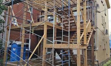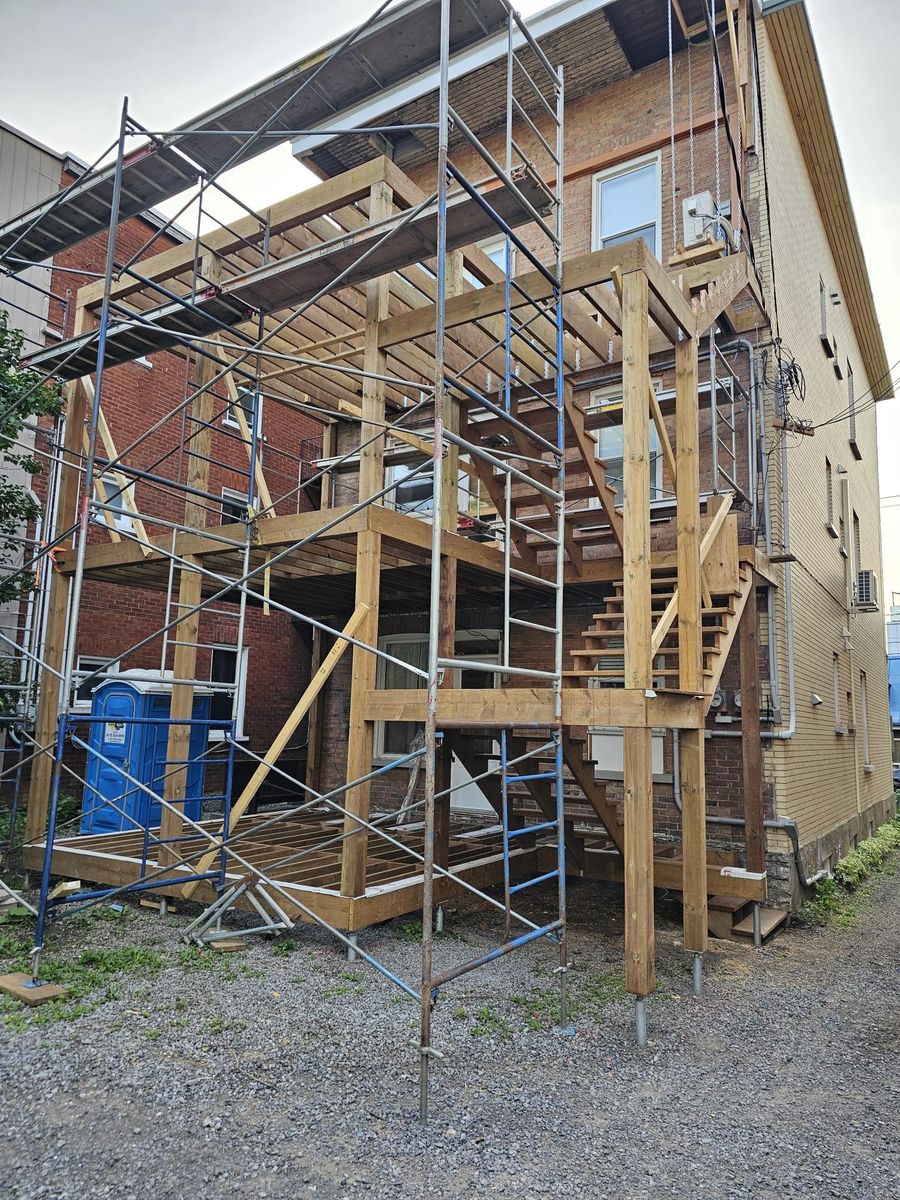 Construction de 3 terrasse avec rampes, barreaux, escaliers en bois et recouvrement de sol en bois de composite recyclé. Recherches associées Travaux - Extérieur Québec/Lévis (Ville de Québec) Balcon Pation Composite Trex Terrasse