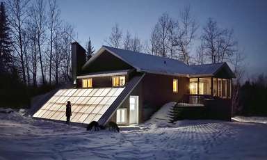 Le site est une propriété boisée de trois acres à Bromont, Québec, Canada. Les besoins exprimés étaient d’ajouter au bâtiment existant une serre pour prolonger la saison de culture, un espace de détente utilisable toute l’année et une porte d’entrée au niveau du sol. Nous avons décidé de conserver les espaces existants du bungalow préfabriqué et de l’agrandir avec des espaces intermédiaires. Cette décision nous a permis de réduire les déchets de construction et de nous concentrer sur l’amélioration de la résilience. Nous avons développé la fonctionnalité jusqu’à ce que la conception devienne simple et évidente, en intégrant des systèmes de résilience alimentaire, en ajoutant une redondance à l’équipement pour les besoins de base et en introduisant à la fois des solutions de basse technologie et des principes passifs.