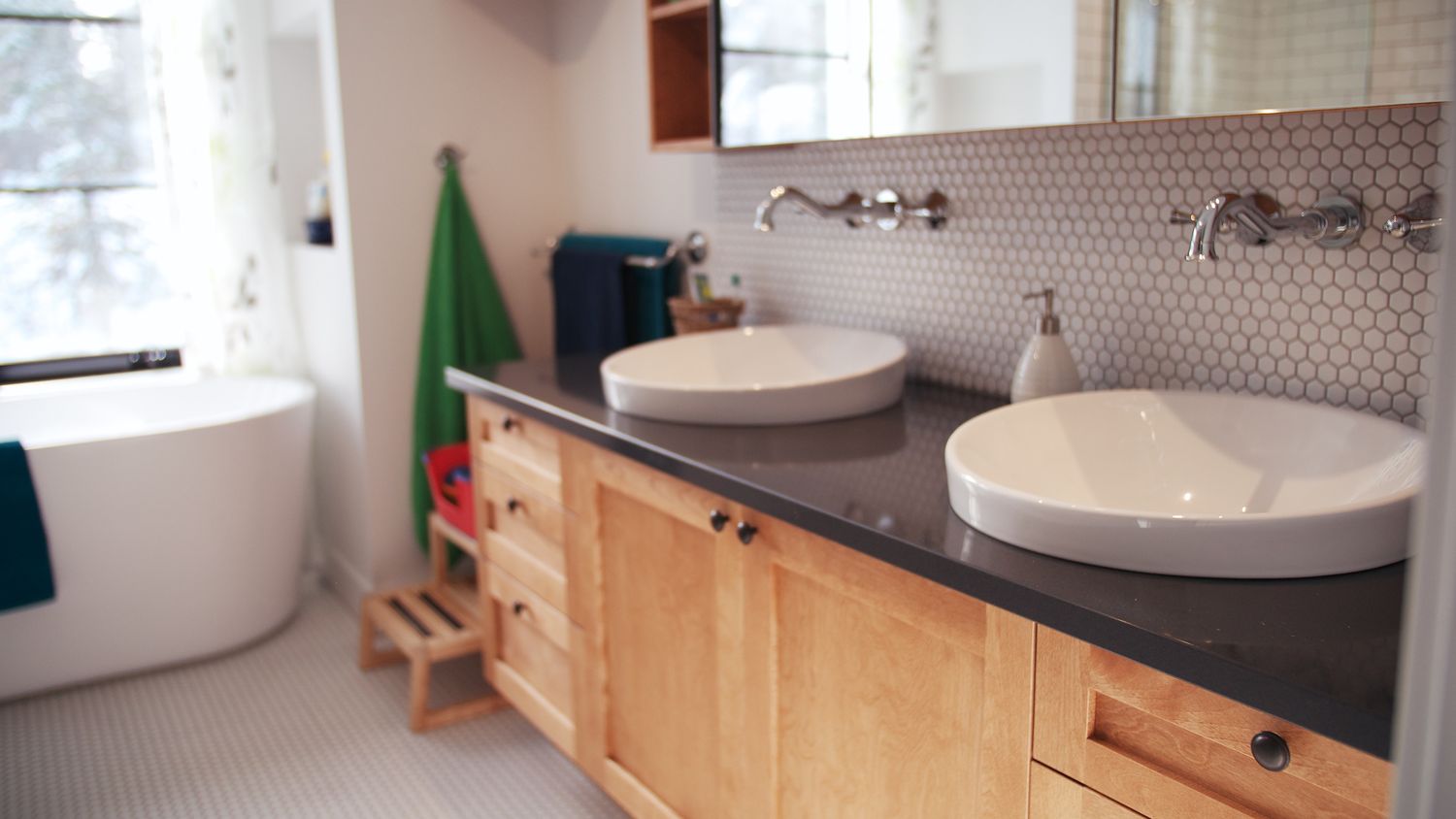 Les salles de bain combinent également élégance et simplicité, complétant le tout confort essentiel à cette famille active et à leurs invités.