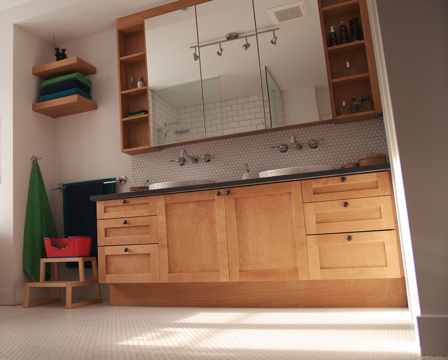 Les salles de bain combinent également élégance et simplicité, complétant le tout confort essentiel à cette famille active et à leurs invités.