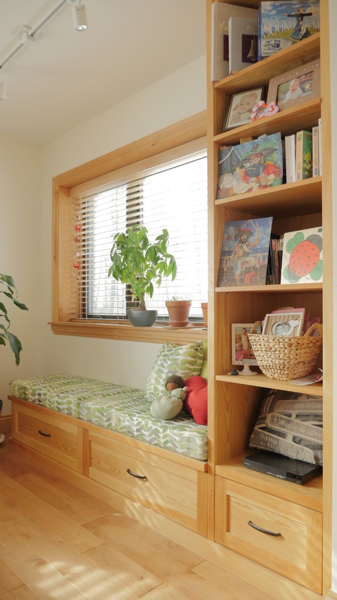 Dans ce projet minutieusement élaboré, tous les éléments et matériaux ont été choisis pour rencontrer les plus hauts critères de construction écologique et d’efficacité énergétique (projet LEED). Le mobilier intégré a été conçu pour être au diapason de la vie active de la famille et offrir la plus grande ergonomie.