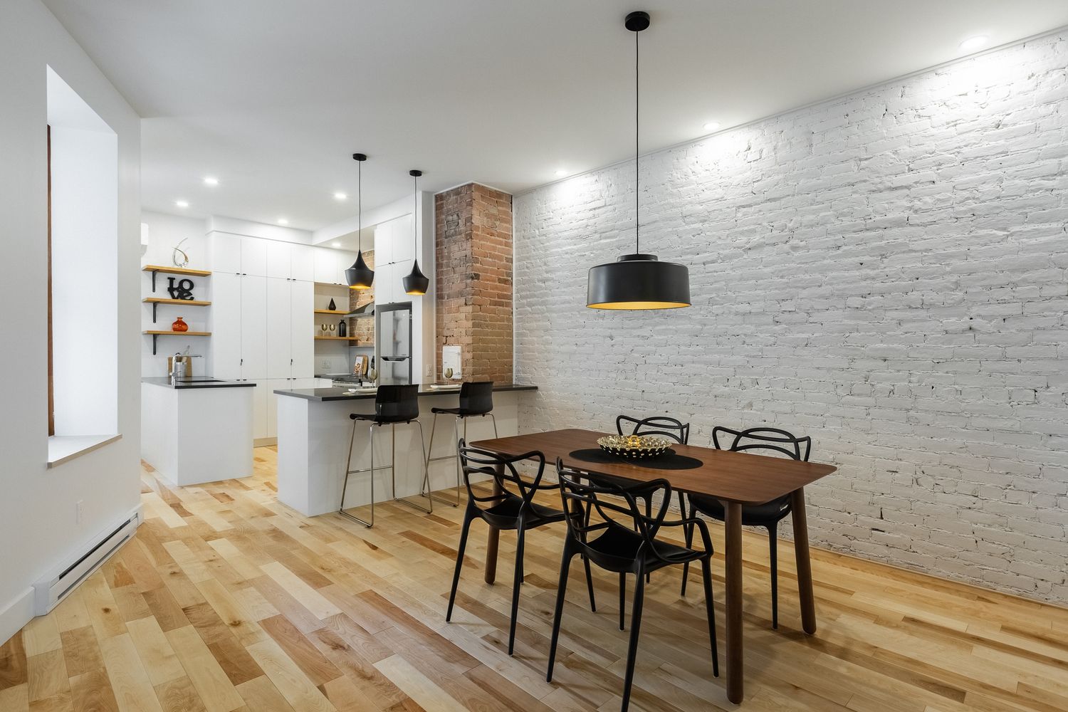 Rénovation complète de ce vaste condo destiné à la revente. Cet appartement typique du Plateau a été entièrement revisité pour créer une aire de vie centrale, lumineuse et conviviale. On a décloisonné pour ouvrir la salle à manger vers la cuisine et transformer la pièce attenante en salon. On a opté pour la mise en valeur des matériaux, traités avec une sobriété contemporaine, et introduit plusieurs clins d’oeil à l’époque de la bâtisse. La cuisine offre le maximum de surfaces de travail et de rangement, tout en exposant la brique d’origine. Un Walk-in / salle de lavage a été annexé à la chambre des maitres, et les deux salles de bain offrent le tout confort et une latitude d’usages pour la pièce du fond, dont la sortie indépendante permet une certaine autonomie.