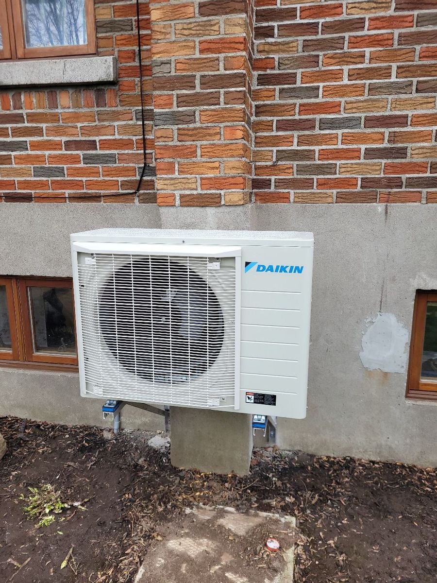 Remplacement d'une fournaise soit électrique ou Mazout par une fournaise de type électrique et l'ajout et ou le remplacement d'une thermopompe Centrale de Marque Daikin Fit de type à décharge latéral qui prend peu d'espace dans votre cours en plus d'êtres siclencieuse.