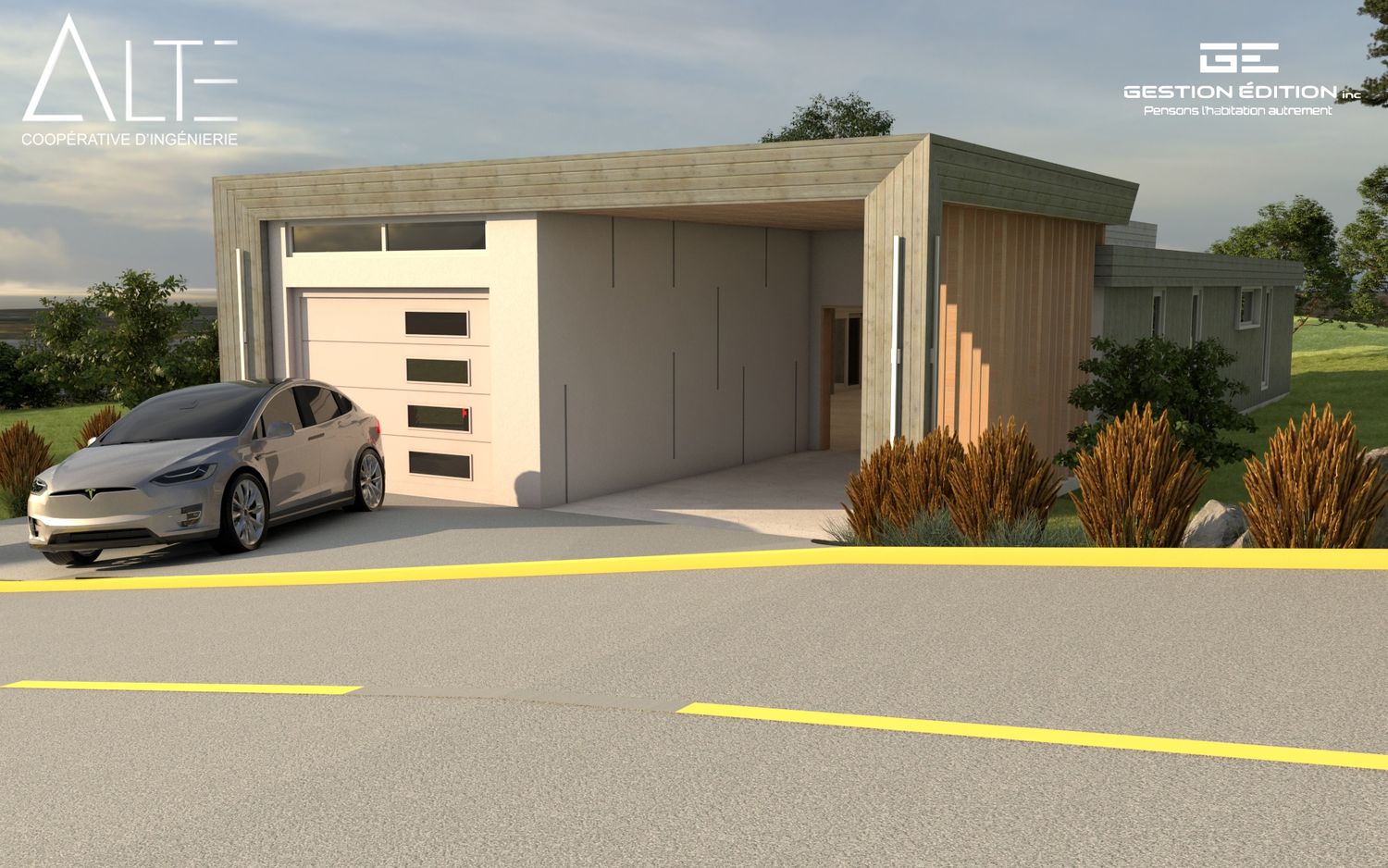 L’objectif de la première phase du mandat a été d’accompagner le client dans la réflexion globale du projet. ALTE a participé entre autres à la conception du bâtiment, réalisation des simulations énergétiques, conseiller sur l’utilisation de panneaux solaire et des systèmes mécaniques, réaliser une estimation des coûts de construction. À la suite de la réflexion globale du projet et détermination du résultat final, ALTE a réalisé des modélisations d’image de promotion pour l’entrepreneur. Nous avons ensuite continué avec la deuxième phase du projet.