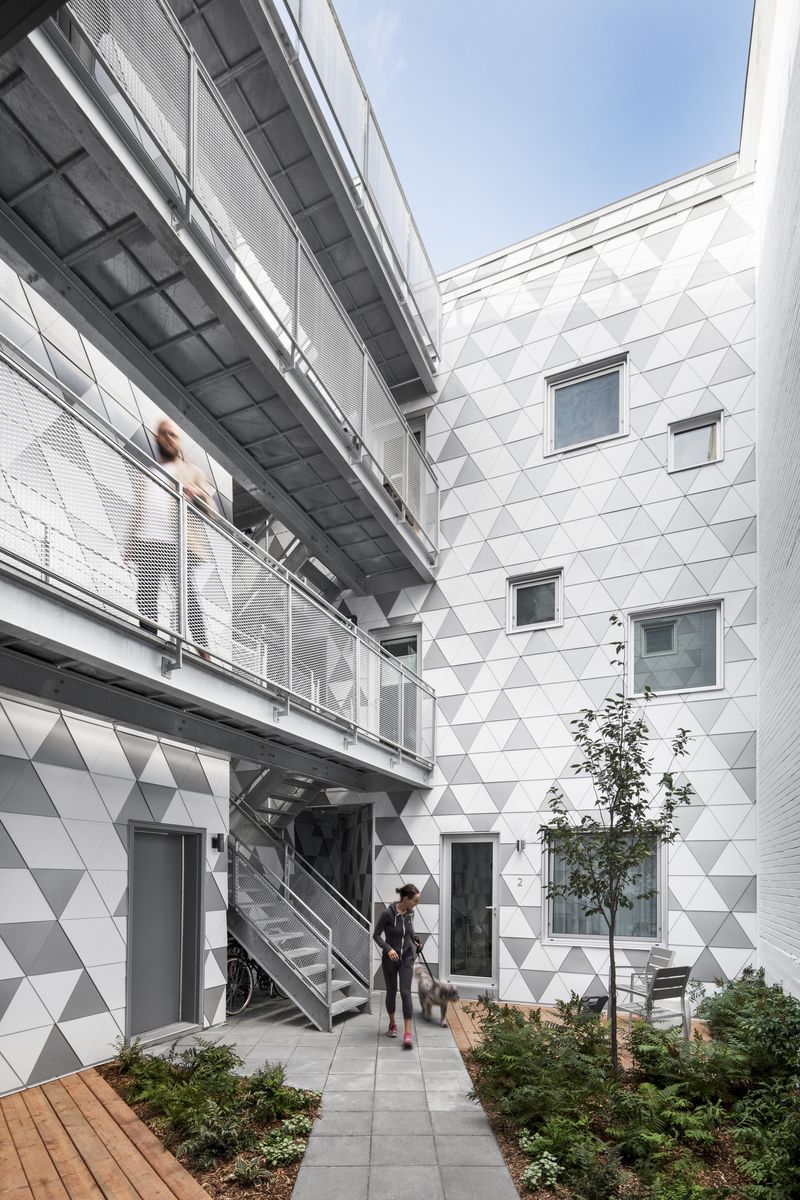 La Géode, un complexe de 5 unités résidentielles, a été pensée selon un concept de durabilité sobre, bien ficelé de A à Z et impeccable en bout de ligne. « La construction vise des standards environnementaux élevés qui en sont les prémisses: le tri et le recyclage des matériaux, la plantation d’arbres et de plantes grimpantes, l’installation d’une toiture blanche et de bacs de plantation, l’utilisation de matériaux et d’équipements efficients énergétiquement», explique Jean-Philippe Grenier, Conseiller en urbanisme, chez KnightsBridge - Construction durable. La meilleure priorisation possible des critères environnementaux a été appliquée.