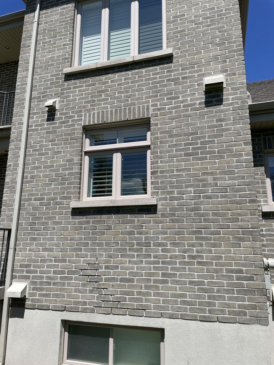 Réfection complète des marches d'entrée en béton, des murets en pierre permacon, réparation aléatoire de la maçonnerie, installation de scellant flexible au endroits propices à la fissuration, installation de grille anti vermine dans les chantepleures, et finition de l'entrée et des escaliers en crépi acrylique renforcé par un treilli de fibre de verre.
