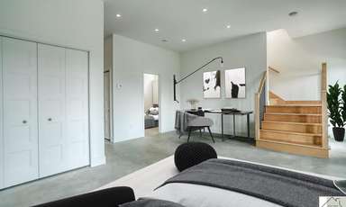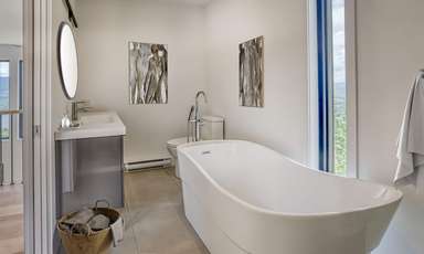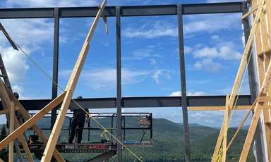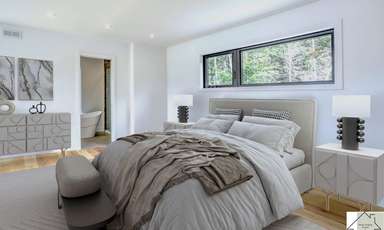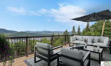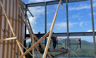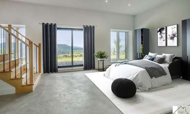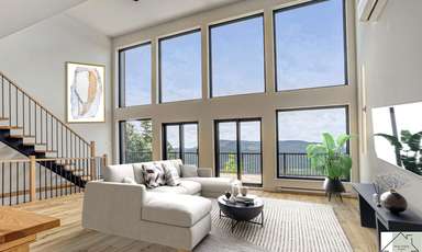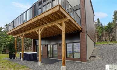 Un véritable défi technique! Construction d'une maison en montagne à plus de 650 mètres d'altitude. Travaux de dynamitage, excavation, remblais et murs de soutènement, fondations en coffrage isolant Nudura, fosse septique dernier cri avec système d'électro-coagulation, station de pompage. Forage d'un puit, structure d'acier pour mur rideau et mezzanine. Gestion efficace de l'eau de pluie.