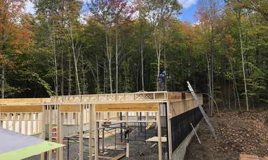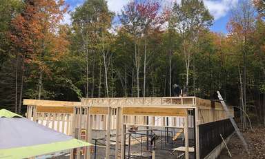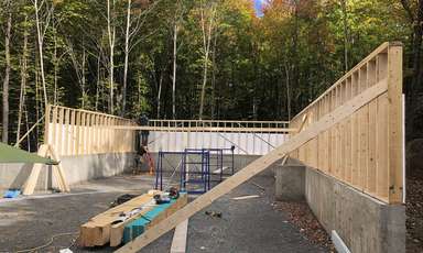 Montage de la structure pour un client dans la région de Chertsey Recherches associées Structures et ossatures Joliette (Lanaudière) Frame Chalet Maison neuve Charpente Structure