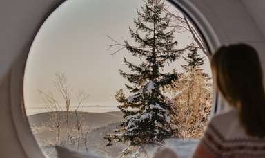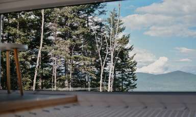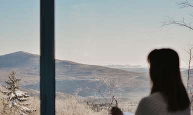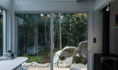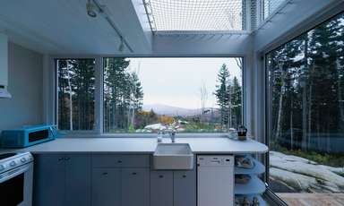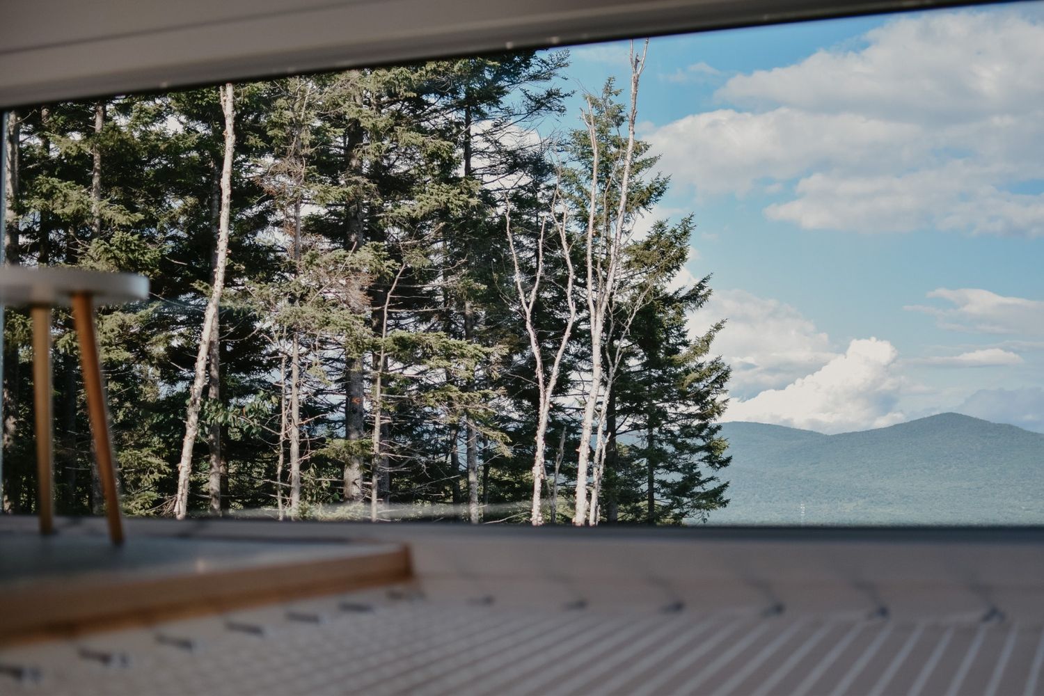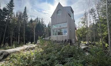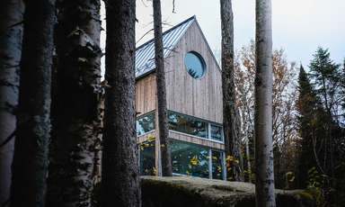 Pensé comme une micro-habitation, son empreinte au sol est de seulement 24 mètres carrés. Sa forme élancée n’est pas sans rappeler le profil des grandes épinettes et évoque aussi la silhouette d'une cabane d'oiseau perchée haut dans les arbres.