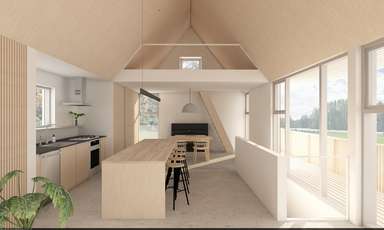 Située en bordure du fleuve Saint-Laurent, cette résidence de Cap Santé a été conçue selon des principes écologiques de construction, en utilisant notamment des systèmes passifs pour le chauffage et la ventilation naturelle. Sa géométrie et sa grande galerie protégée ont été inspirées des maisons québécoises traditionnelles.
