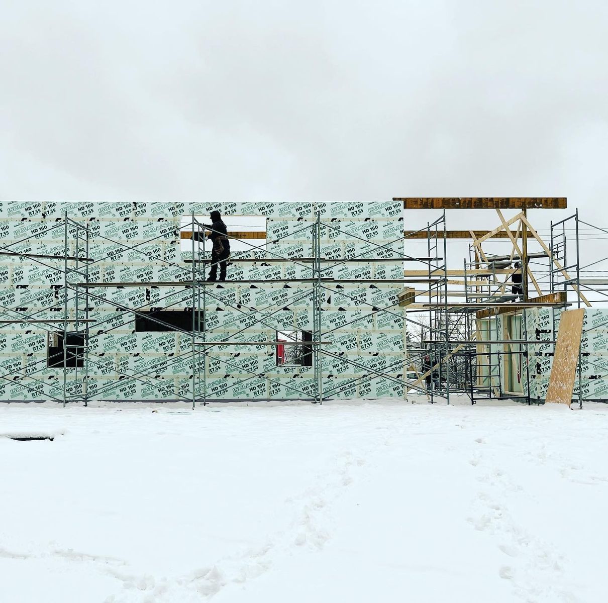 La façade orientée au sud est complètement vitrée pour permettre un gain solaire important en hiver, celui-ci étant emmagasiner dans une dalle de béton agissant comme une masse thermique. La grande galerie et son généreux débord de toit servent à la fois de belvédère pour admirer le fleuve mais aussi de dispositif servant à empêcher la surchauffe à l’intérieur de la maison.