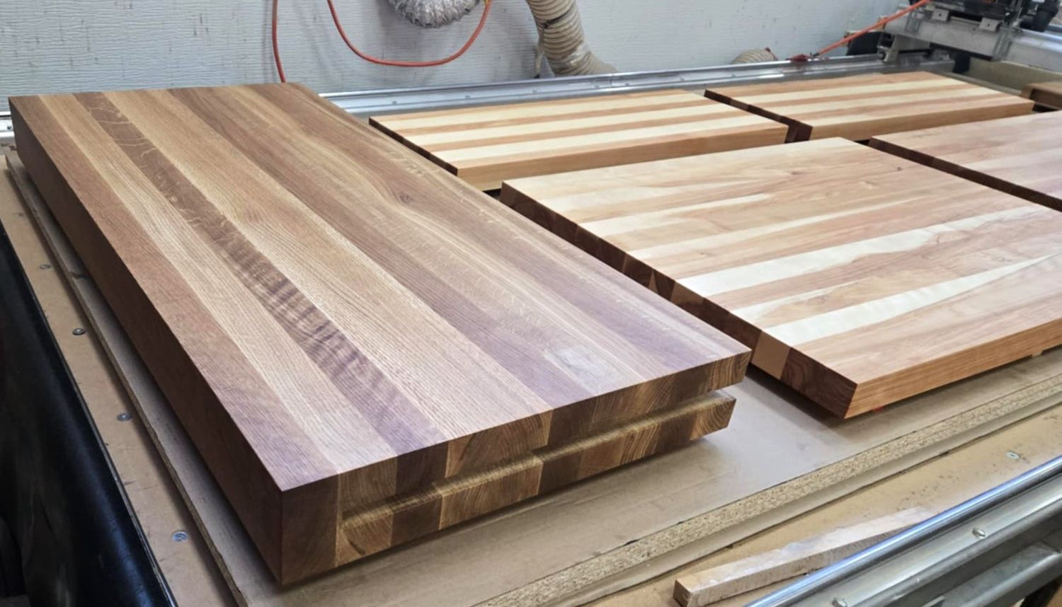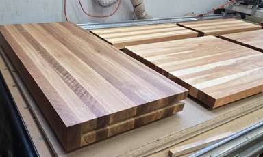 Comptoir de chêne blanc huilé (gauche)/ merisier (droite)